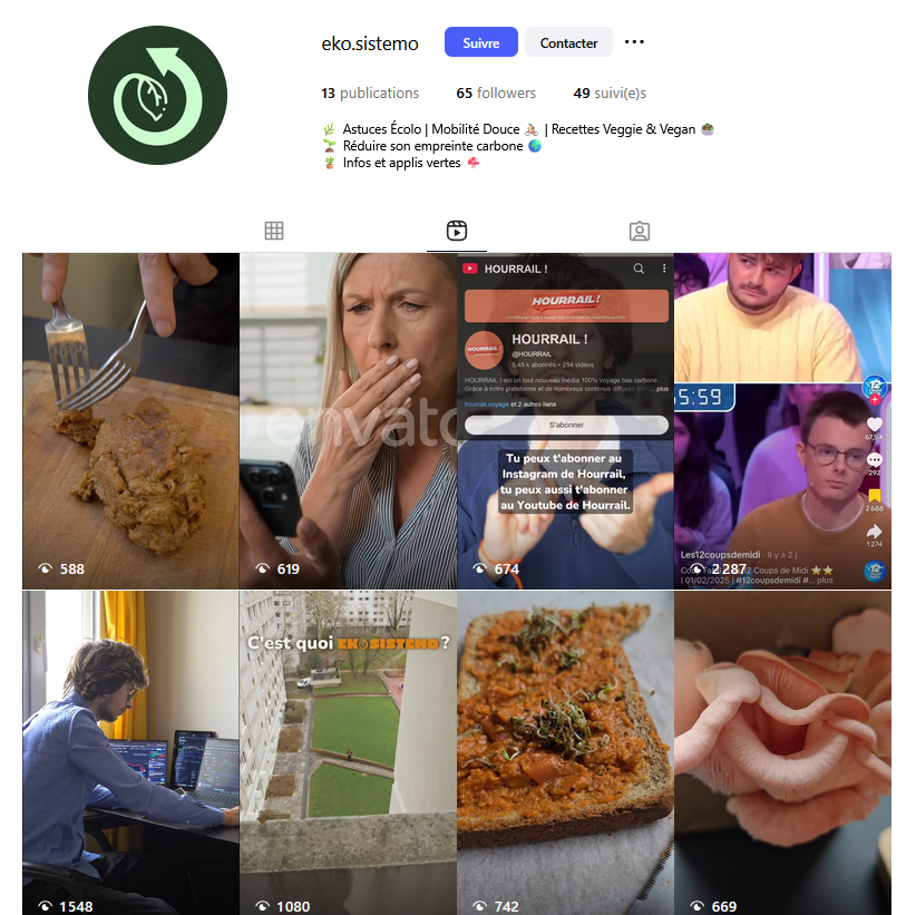 Vidéos verticales réalisées pour la page @eko.sistemo, média indépendant traitant d'écologie.